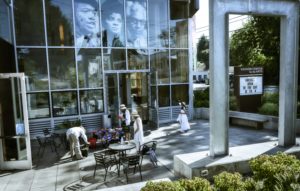 A visual messaging for our mental health with a flower give-away using a giant James Chesney chair from the lobby of Vashon Center for the Arts and a tiny Indonesian chair from Dianne Grob with ten different gardeners heeding a call for flowers at a moment’s notice. Additional signs invited the public to “Take one for yourself” “Take one for a friend” “Give one to a stranger”
